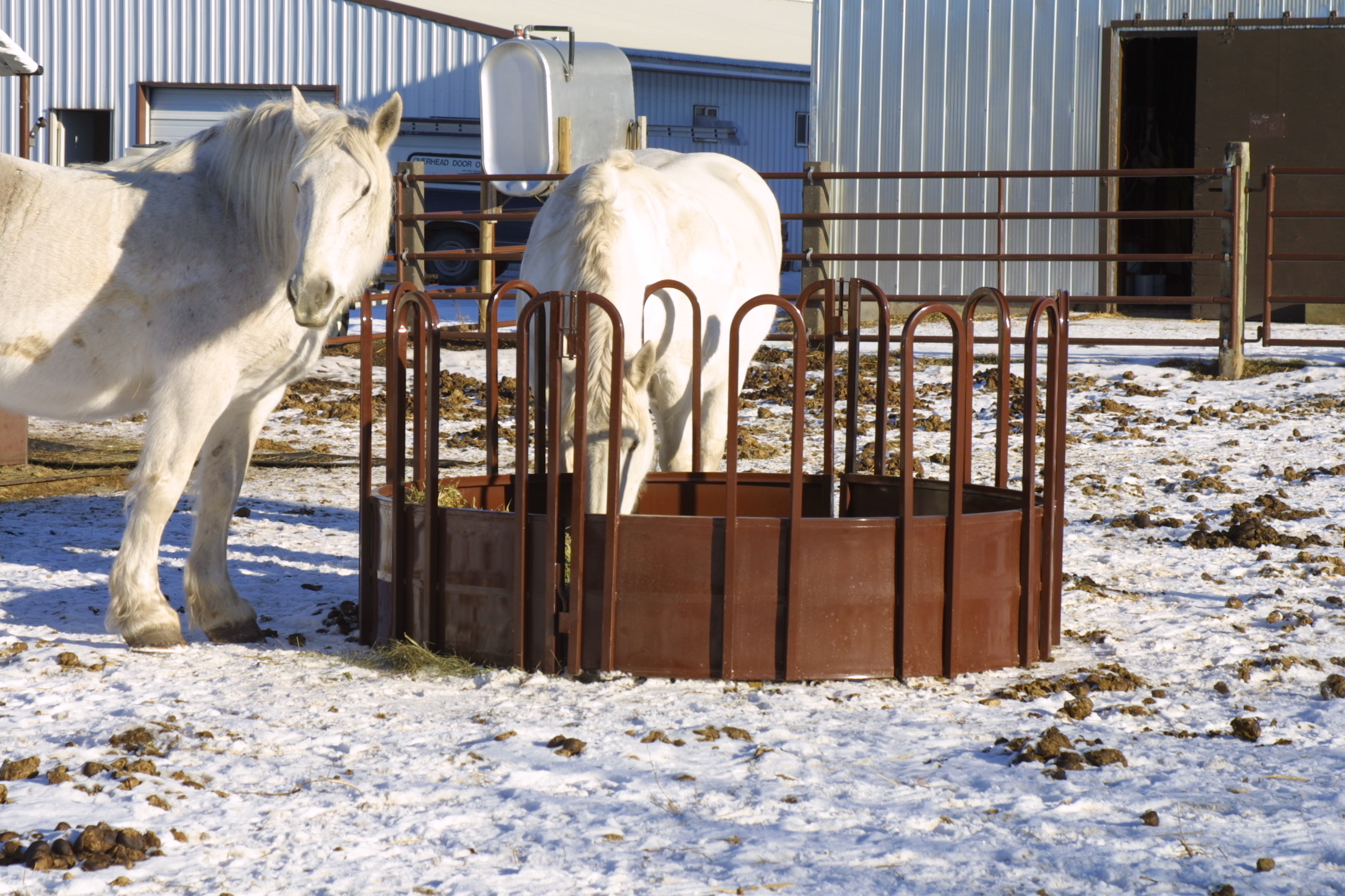 HiQual's Bull Feeder incorporates the Tombstone Saver design with wider spacing between the hoops to accommodate the larger necks of mature bulls. It is also an ideal feeder for draft horses.